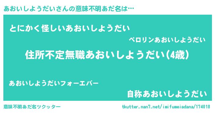 | 欧米人風あだ名 | 『ダレノガレあおいしようだい』 |