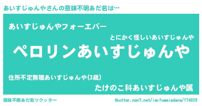 | 男性向けラノベタイトル風あだ名 | 『あいすじゅんやの憂鬱』 |