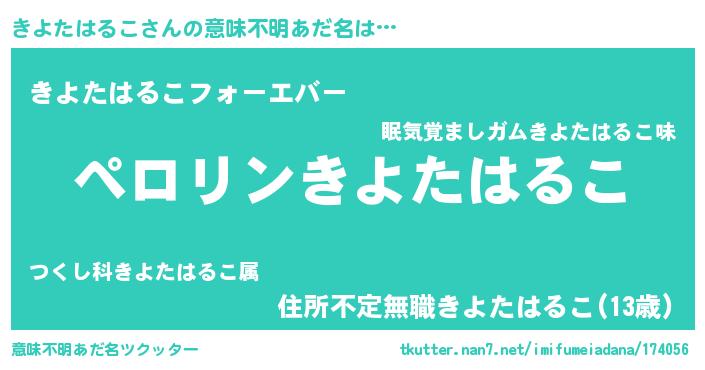 | 男性向けラノベタイトル風あだ名 | 『キヨタハルコアートオンライン』 |