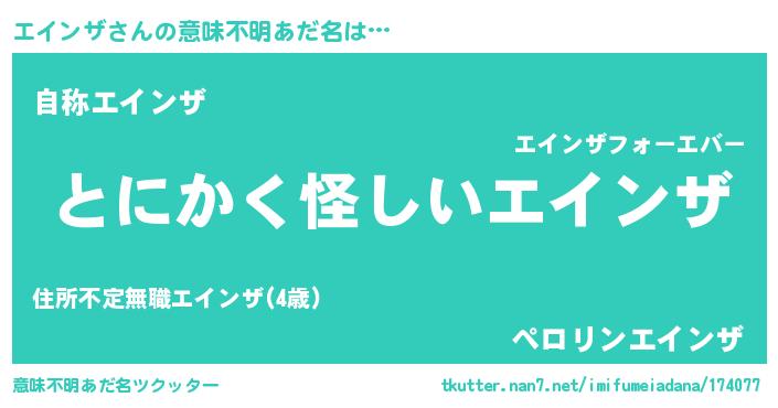 | 男性向けラノベタイトル風あだ名 | 『ダンジョンにエインザを求めるのは間違っているだろうか』 |