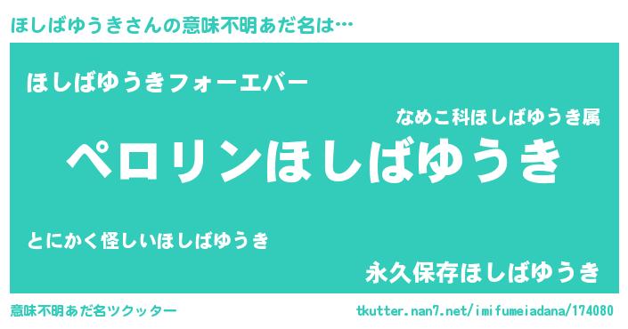 | 胡散臭い通販商品みたいなあだ名 | 『必ず成功するブレスレット…その名も「ほしばゆうき」』 |