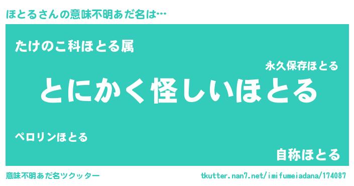 | 料理風あだ名 | 『ほとるの豆乳スープ』『ほとるごはん』 |