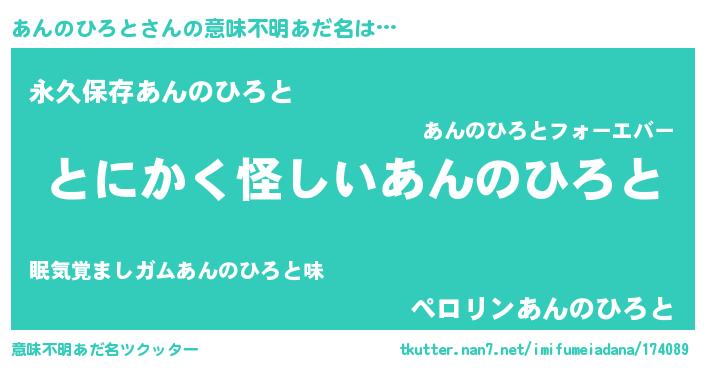| 女子向けラノベタイトル風あだ名 | 『あんのひろと様がみてる』 |