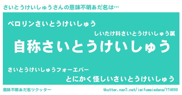 | 肩書あだ名 | 『さいとうけいしゅう総統』 |