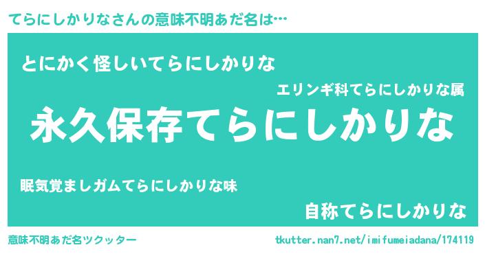 | ポケモン風あだ名 | 『ゼニテラ』『ヒテラニシカリナ』 |