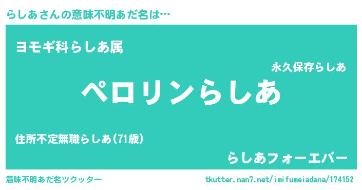 | ヒーロー風カッコイイあだ名 | 『スーパーラシア』『ウルトラらしあマン』 |