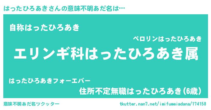 | 肩書あだ名 | 『はったひろあき上級大将』 |