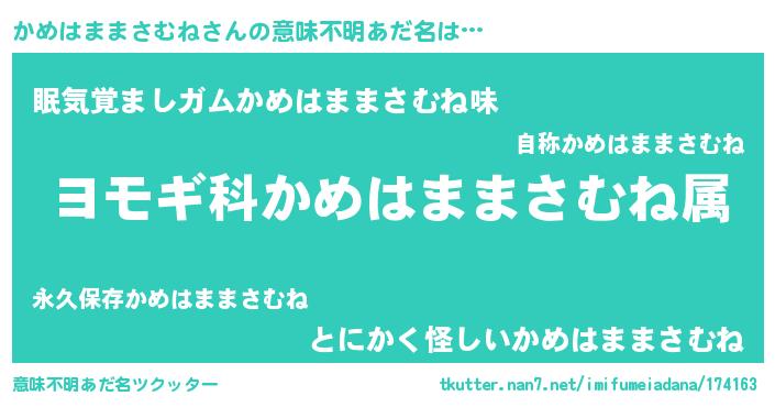 | ヘコむあだ名 | 『かめっ子』『かめはままさむね(苦笑)』 |