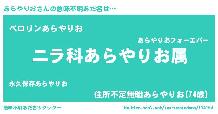 | 胡散臭い通販商品みたいなあだ名 | 『億万長者になれる霊験あらたかなお札…その名も「あらやりお」』 |