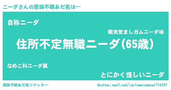 | ヒーロー風カッコイイあだ名 | 『仮面ニーダー』『究極戦士ニーダ』 |