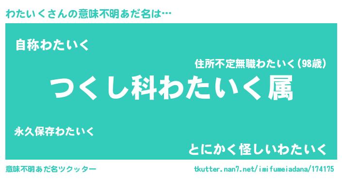 | ヒーロー風カッコイイあだ名 | 『最強戦士ワタイク』『炎刃騎士ワタ』 |