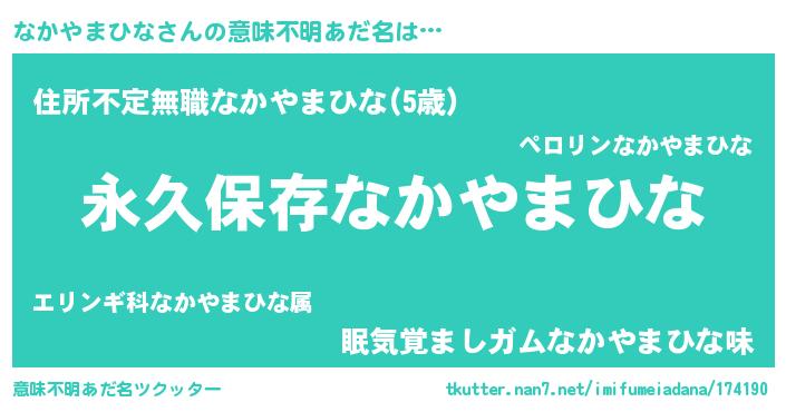 | 欧米人風あだ名 | 『なかやまひな・ステッグマイヤー』 |