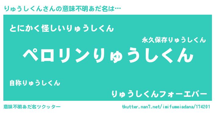 | 男性向けラノベタイトル風あだ名 | 『りゅうしくんの憂鬱』 |