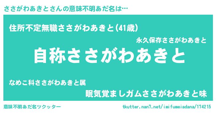| ヘコむあだ名 | 『ささがわあきと(笑)』『ささっ子』 |