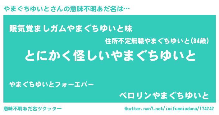 女子向けラノベタイトル風あだ名 | 『やまぐちゆいと様がみてる』 |