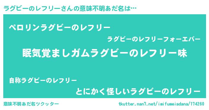 | ピコ太郎風あだ名 | 『ララ太郎』『ラコ八郎』『ラグ八郎』 |