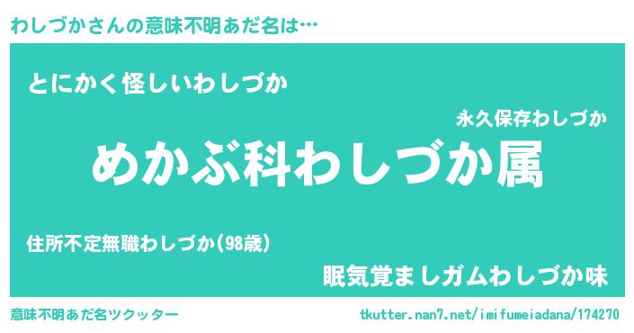 | 男性向けラノベタイトル風あだ名 | 『ワシヅカスレイヤー』 |