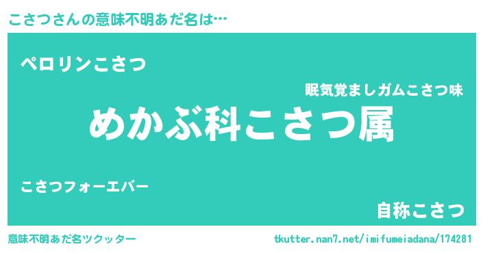 | 伝説のあだ名 | 『伝説のスナイパーこさつ』 |