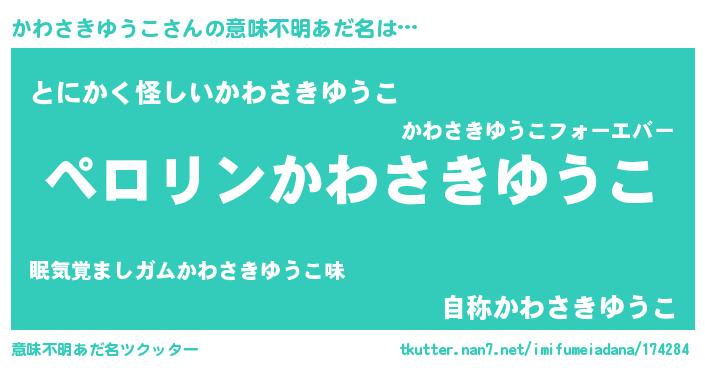 | ヒーロー風カッコイイあだ名 | 『スーパーカワサキユウコ』 |