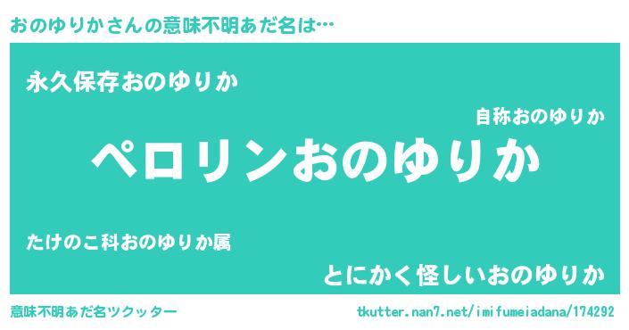 | 男性向けラノベタイトル風あだ名 | 『オノユリカアートオンライン』 |