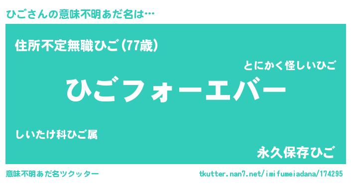 | ヘコむあだ名 | 『酢こんぶ』『ひご(苦笑)』『ひごお』 |