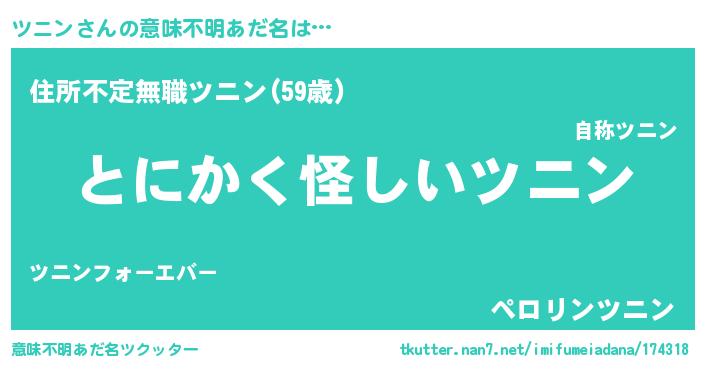 | 胡散臭い通販商品みたいなあだ名 | 『伝統あるサプリメント…その名も「ツニン」』 |