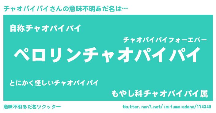 | 男性向けラノベタイトル風あだ名 | 『チャオパイパイの憂鬱』 |