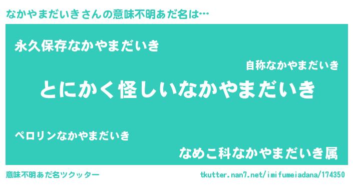 | 欧米人風あだ名 | 『なかやまだいき・ステッグマイヤー』 |