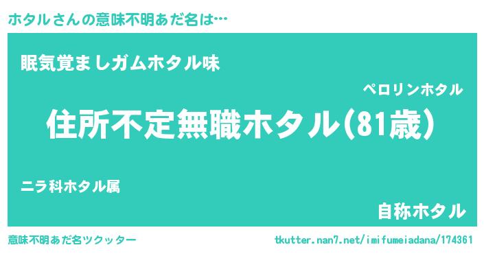| 男性向けラノベタイトル風あだ名 | 『この素晴らしい世界にホタルを!』 |