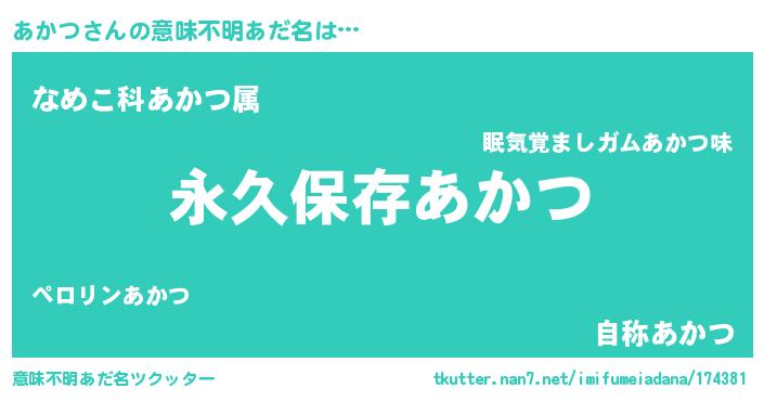 | ヘコむあだ名 | 『あかつ(小並感)』『あかふぇ~』 |