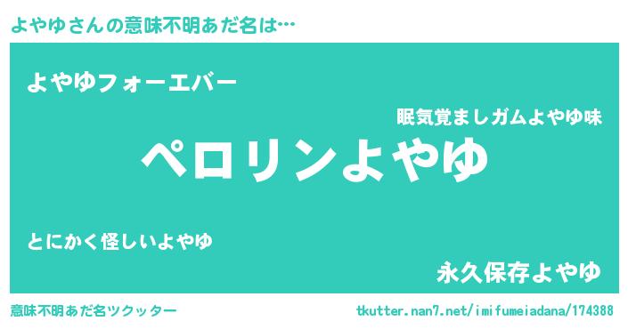 | ヒーロー風カッコイイあだ名 | 『スーパーヨヤユ』『ウルトラよやゆマン』 |