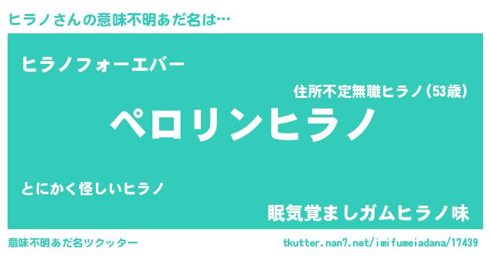 | 男性向けラノベタイトル風あだ名 | 『ヒラノの憂鬱』『はたらくヒラノさま!』 |