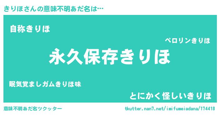 | 欧米人風あだ名 | 『きりほ・ステッグマイヤー』 |