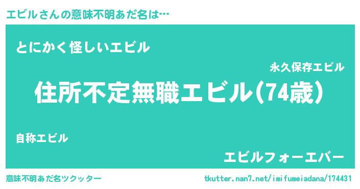 | 女子向けラノベタイトル風あだ名 | 『エビルが死なない童話 林檎のエビルの診療簿』 |
