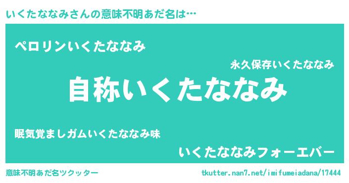 | 男性向けラノベタイトル風あだ名 | 『Re:いくたななみから始める異世界生活』 |