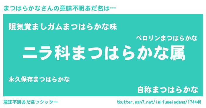 | 胡散臭い通販商品みたいなあだ名 | 『モンドセレクションを受賞したイリジウム磁石…その名も「まつはらかな」』 |