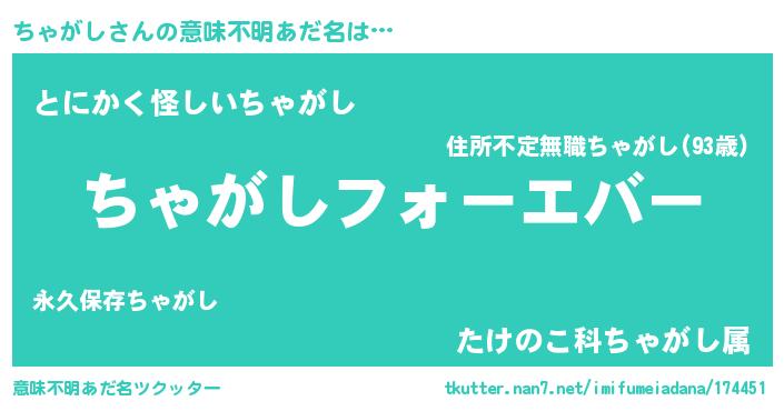 | 欧米人風あだ名 | 『ちゃがし・ステッグマイヤー』 |