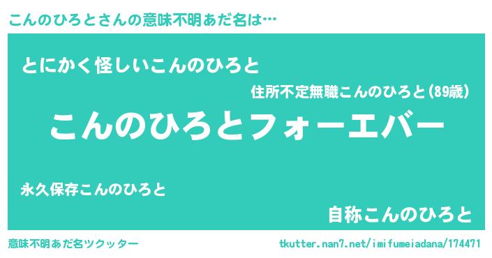| 欧米人風あだ名 | 『こんのひろと・ステッグマイヤー』 |