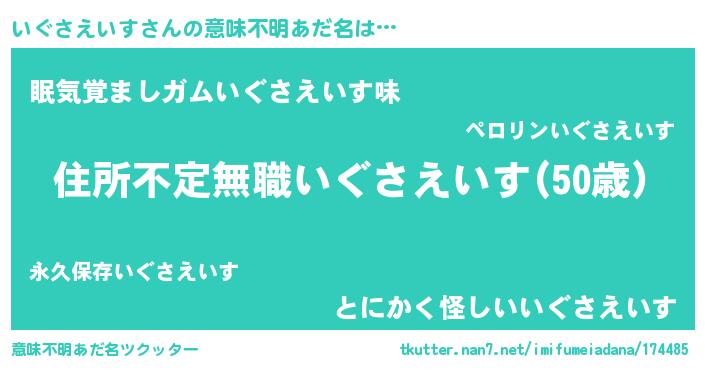 | 男性向けラノベタイトル風あだ名 | 『うちのいぐさえいすが世界を掌握している!』 |