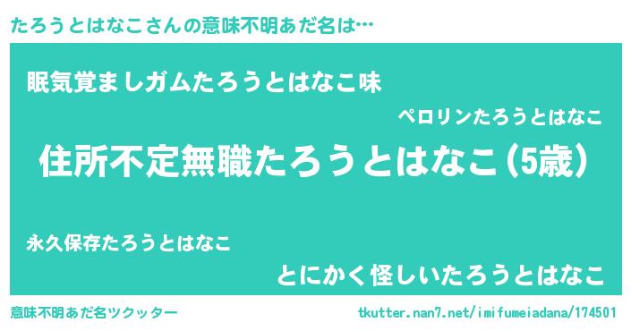 | 男性向けラノベタイトル風あだ名 | 『この素晴らしい世界にたろうとはなこを!』 |