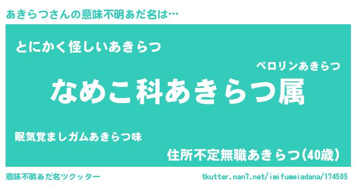 | 胡散臭い通販商品みたいなあだ名 | 『伝統あるサプリメント…その名も「あきらつ」』 |