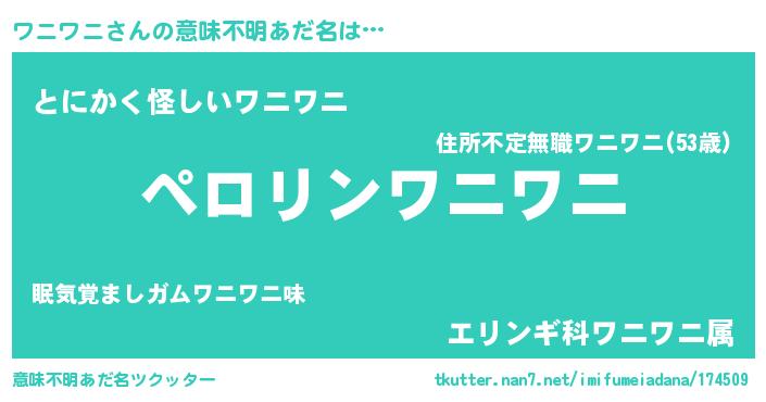 | 胡散臭い通販商品みたいなあだ名 | 『モテモテ間違いなし霊験あらたかなお札…その名も「ワニワニ」』 |
