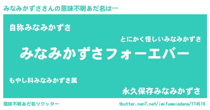 | 男性向けラノベタイトル風あだ名 | 『緋弾のミナミカズサ』 |