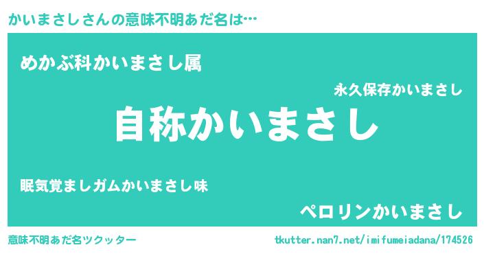 | ヘコむあだ名 | 『かいっふぃ~』『かいまさし(震え声)』 |