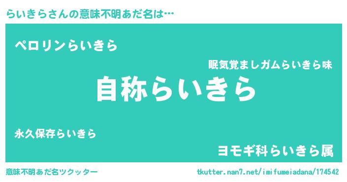 | ヒーロー風カッコイイあだ名 | 『最強戦士ライキラ』『スーパーライキラ』 |