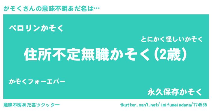 | ヘコむあだ名 | 『かそにー』『かそく(苦笑)』 |