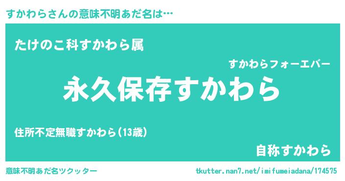 | 女子向けラノベタイトル風あだ名 | 『すかわらの契約王妃』『闇のすかわら』 |