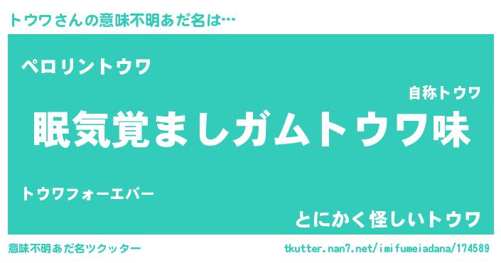| ヒーロー風カッコイイあだ名 | 『慈愛の使者トウワ』『スーパートウワ』 |