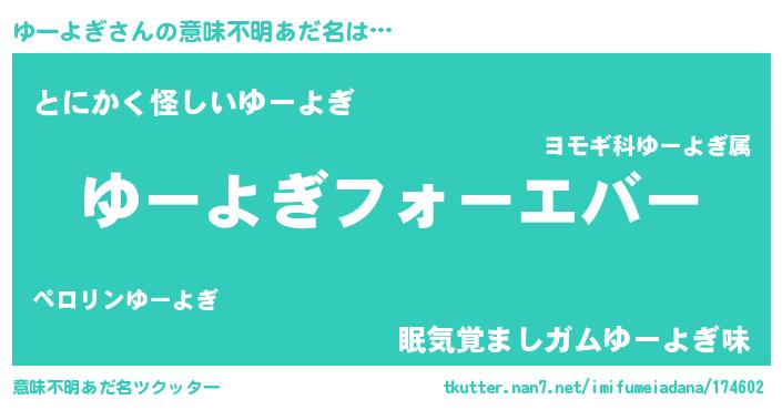 | 欧米人風あだ名 | 『ゆーよぎクリステル』 |