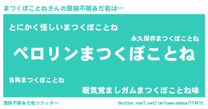 | 胡散臭い通販商品みたいなあだ名 | 『億万長者になれる水晶球…その名も「まつくぼことね」』 |
